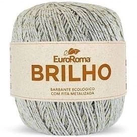 Barbante EuroRoma Brilho possui uma fita metalizada em sua composição, nas cores prata e dourado, o que proporciona um toque único e de luminosidade ao seu artesanato. Mais de 95% de sua composição provém de matéria-prima reciclada. Pode ser usado na confecção de bolsas, almofadas, necessaires, souplast, tapetes entre outros.